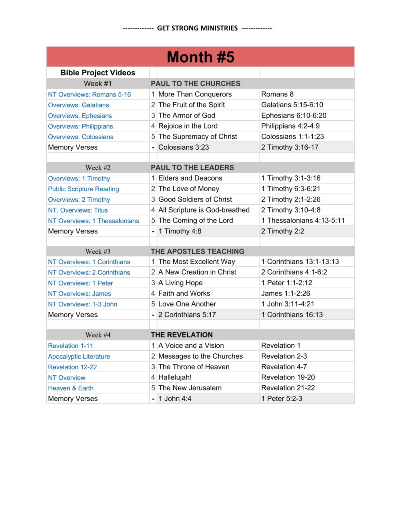 Five Month Discipleship Reading Plan